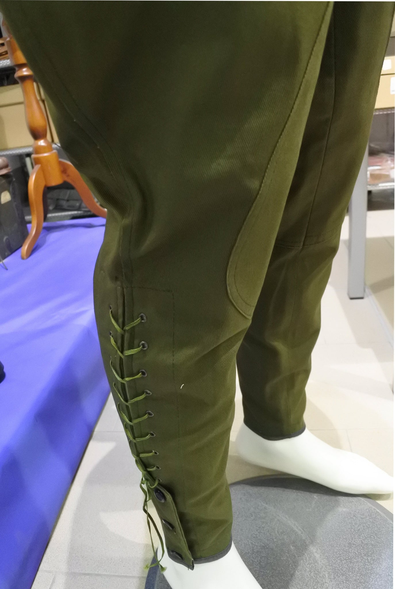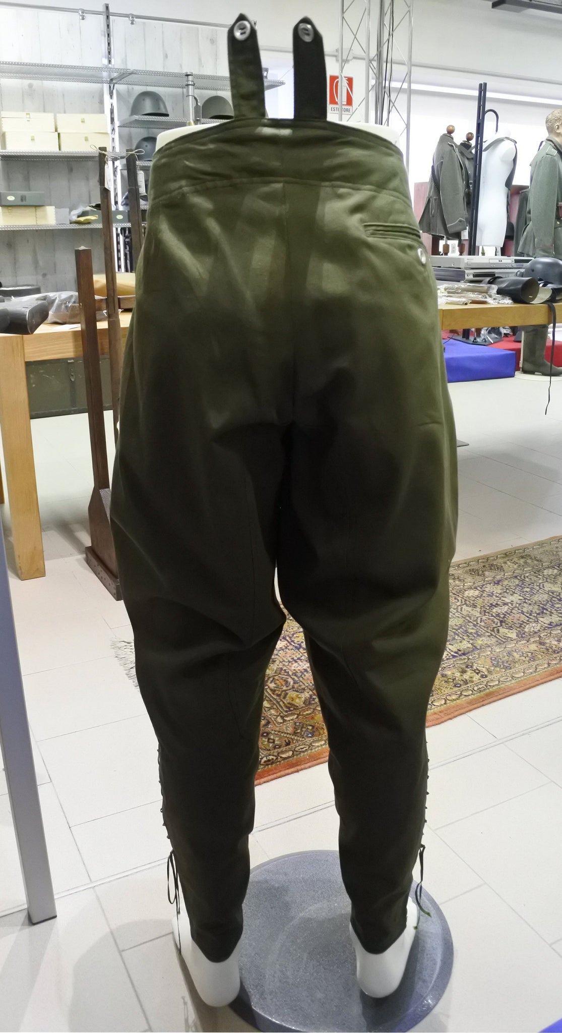 Riproduzione fedele dei pantaloni coloniali verdi in uso alle truppe dellAfrika Korps durante la Seconda Guerra Mondiale, realizzati ispirandosi ai modelli originali impiegati nel teatro operativo nordafricano.