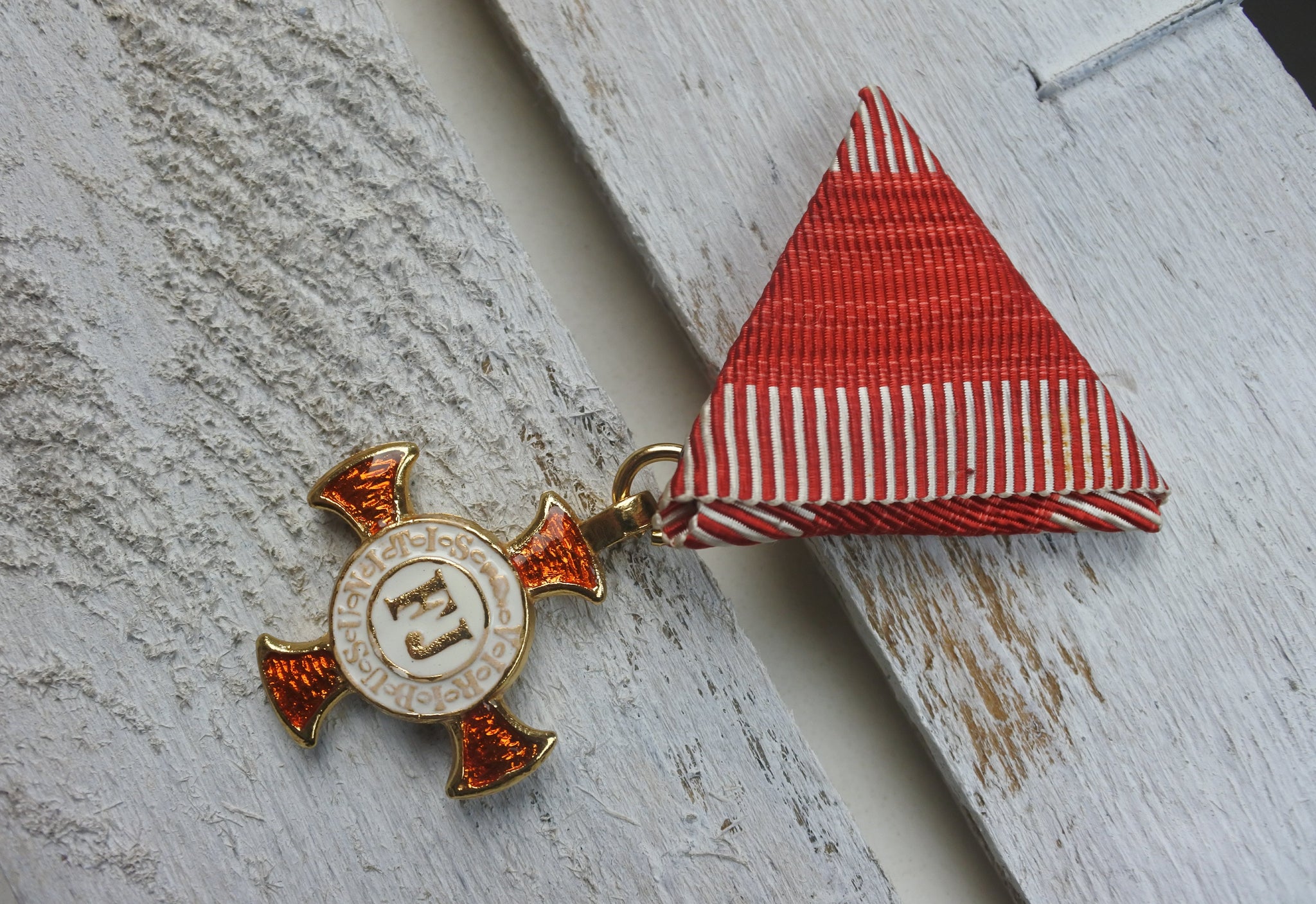 Riproduzione accurata della Croce d'Oro al Merito (Goldenes Verdienstkreuz), onorificenza austro-ungarica istituita nel 1849 e ancora conferita durante la Prima Guerra Mondiale.