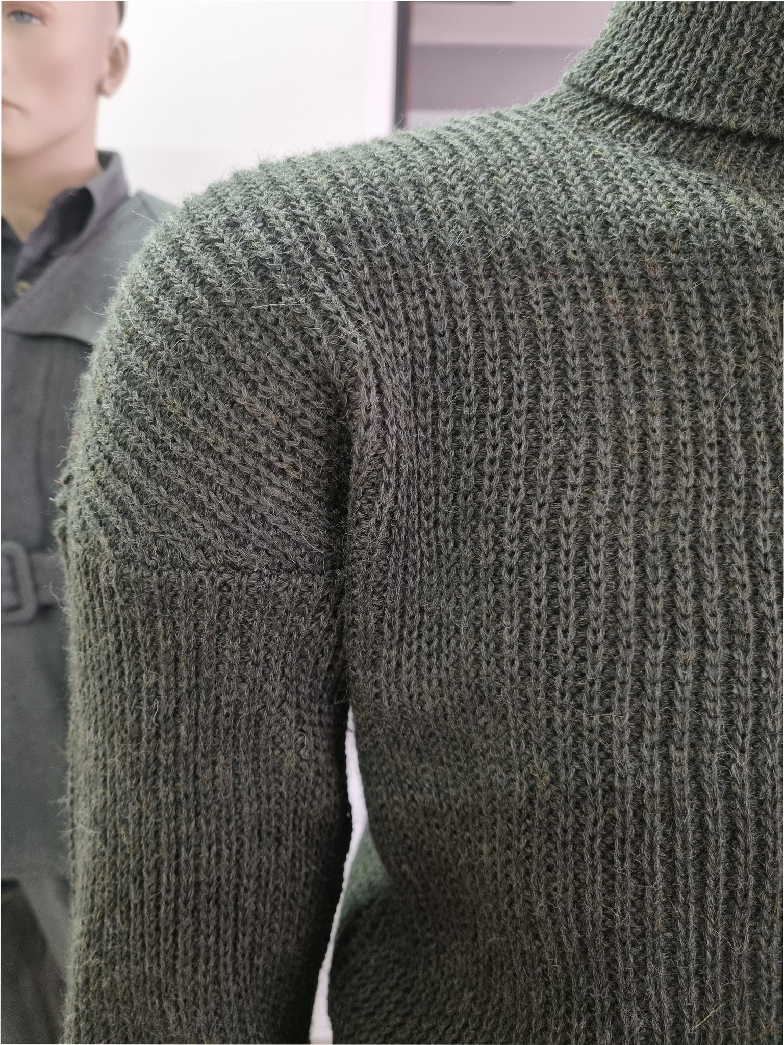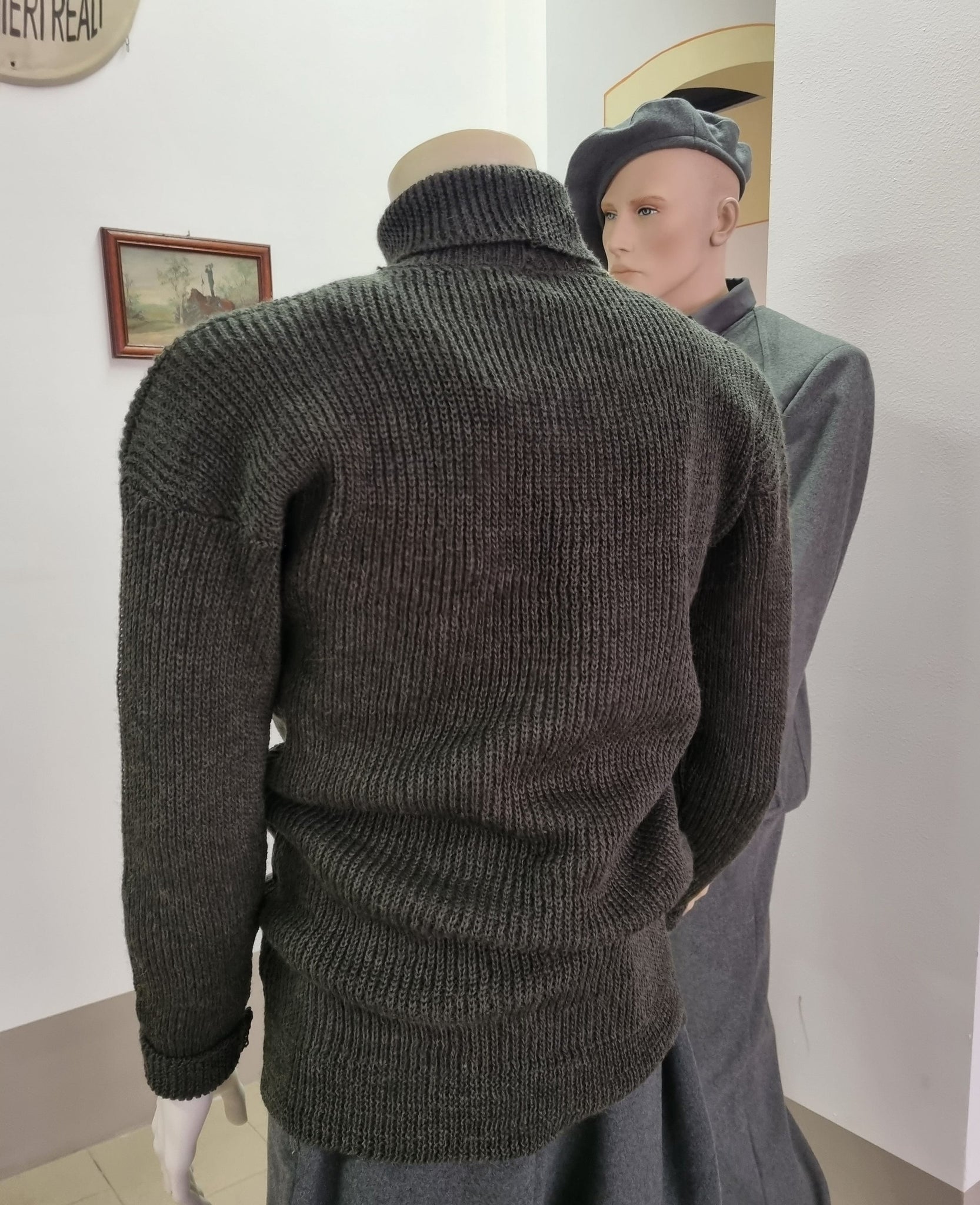 Riproduzione fedele del maglione a collo alto in pura lana, in dotazione al soldato del Regio Esercito Italiano e successivamente impiegato anche dai reparti della RSI, in uso dalla Prima Guerra Mondiale fino al 1945.