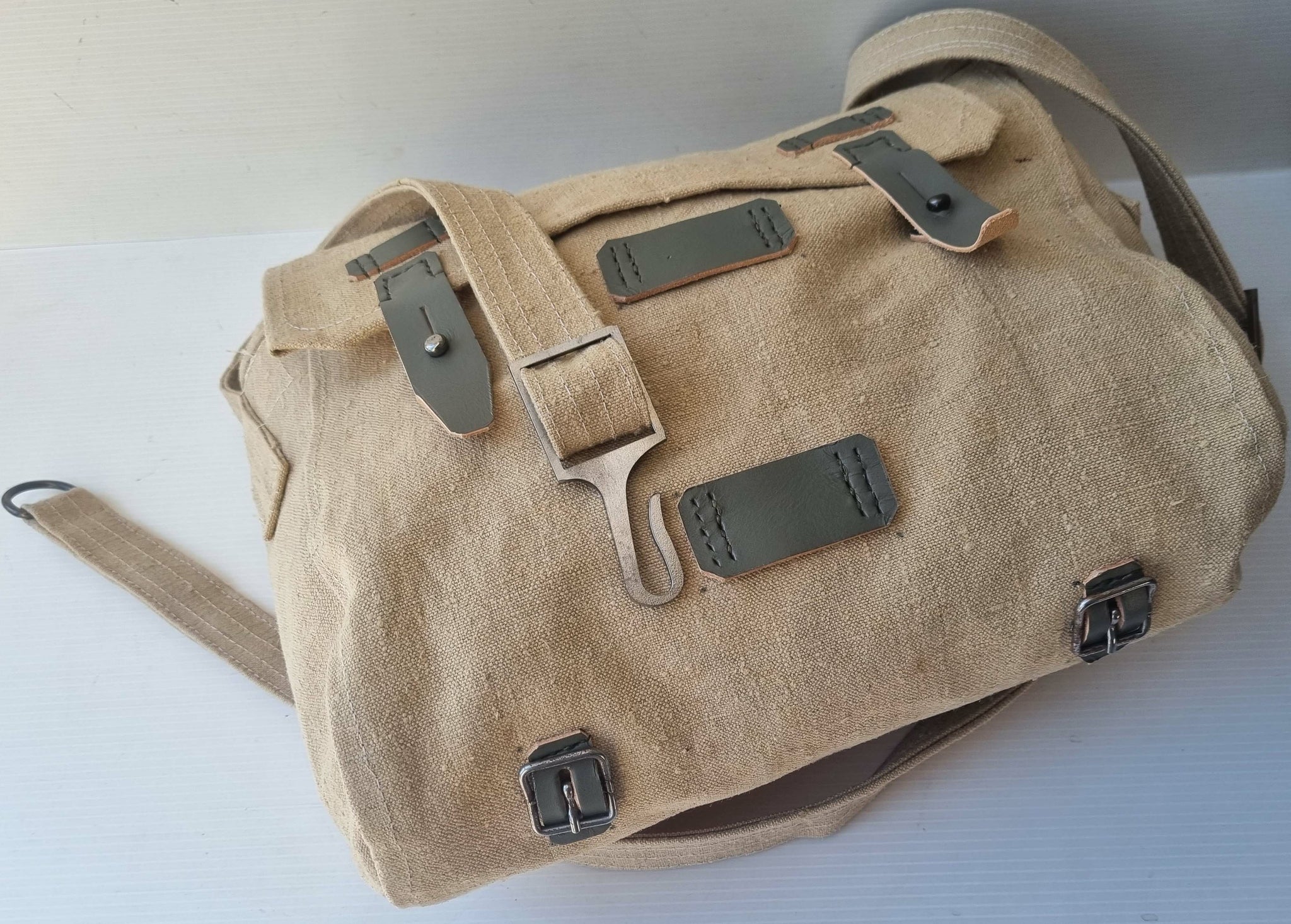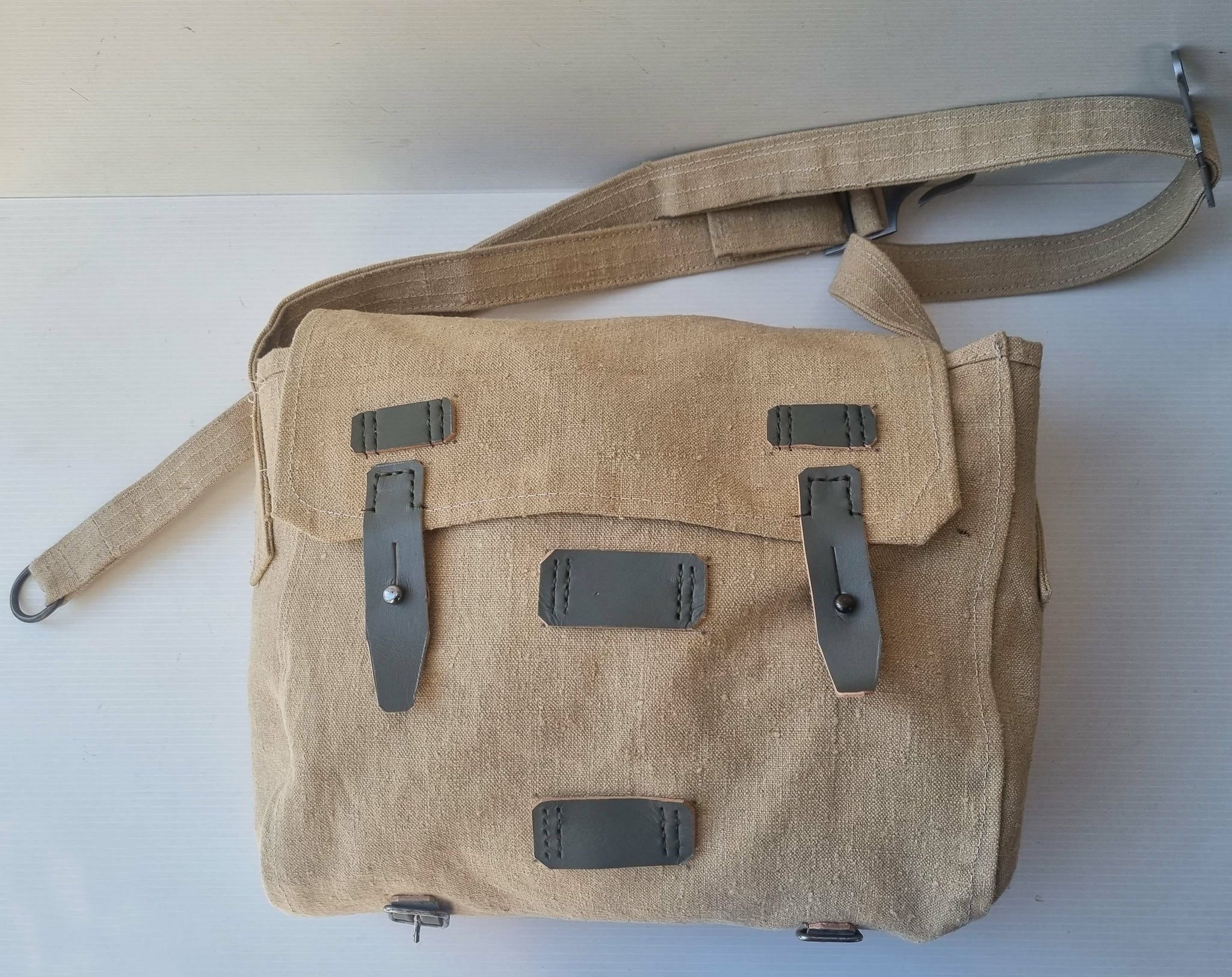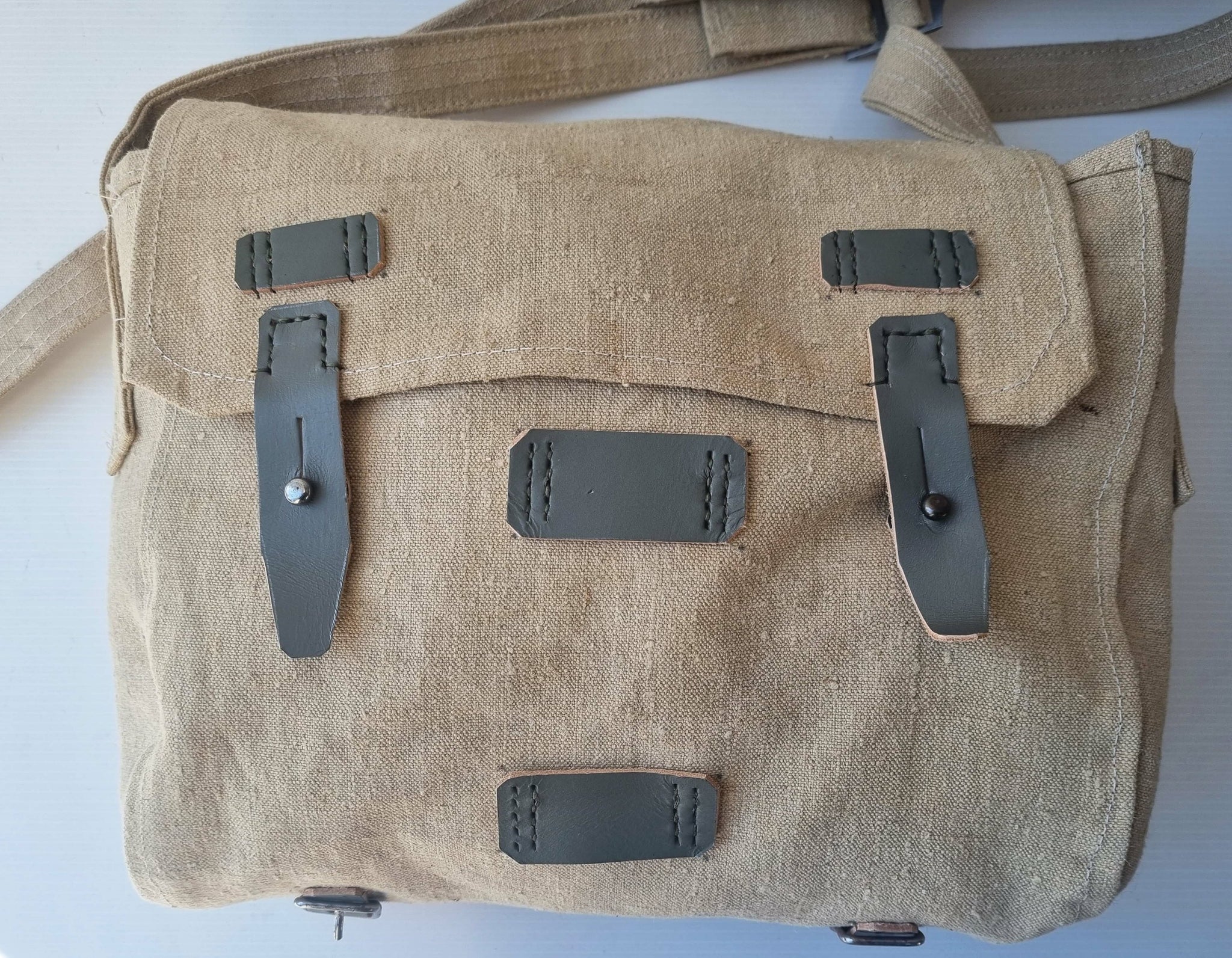 Realizzato in robusta tela, con tracolla regolabile e chiusura a patta frontale fissata da cinghie e fibbie in cuoio, era uno degli elementi essenziali dellequipaggiamento del fante italiano.