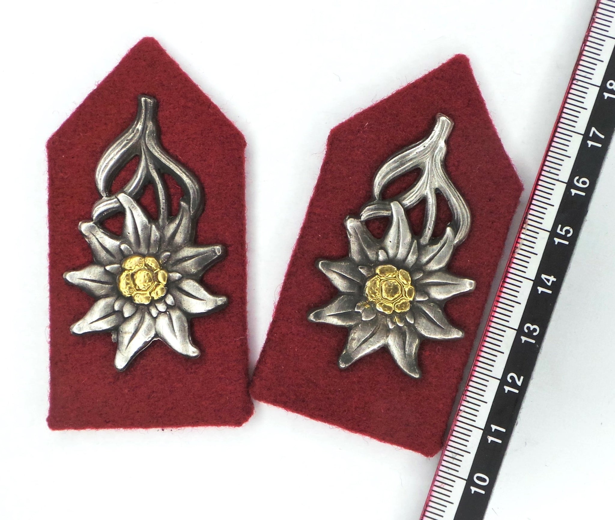 Su tali mostrine veniva applicato un fregio raffigurante la Stella Alpina, denominata Edelweiss.