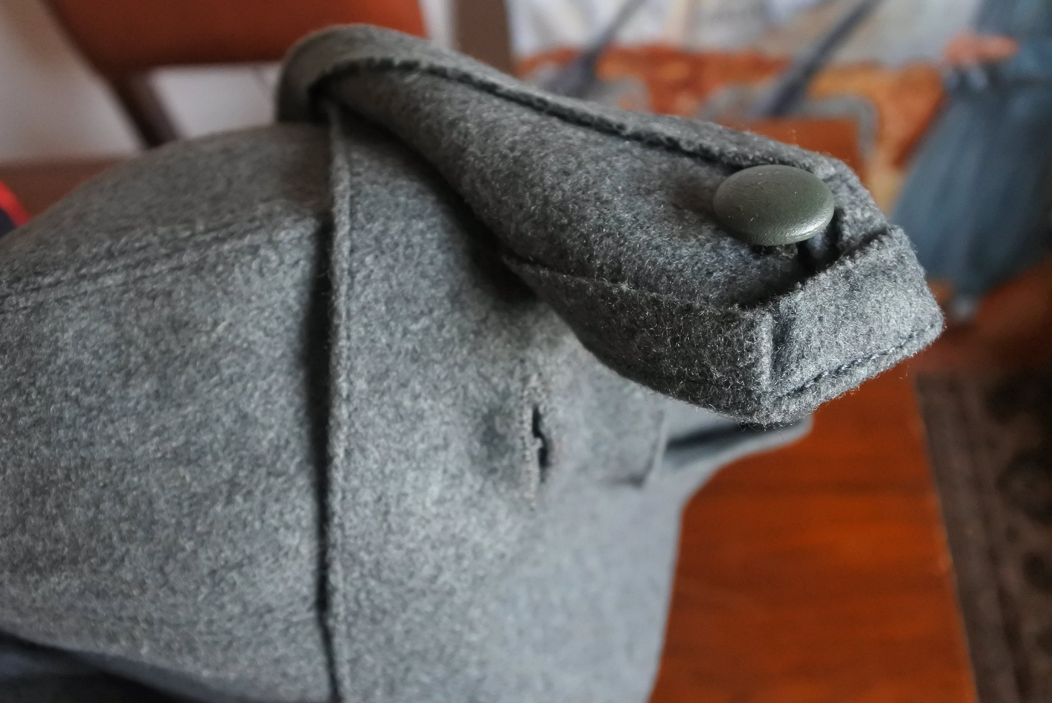 Il colore grigio verde può variare leggermente, come avveniva anche nei capi originali dell’epoca: questo non è un difetto ma un pregio, poiché rispecchia la naturalezza delle produzioni storiche.