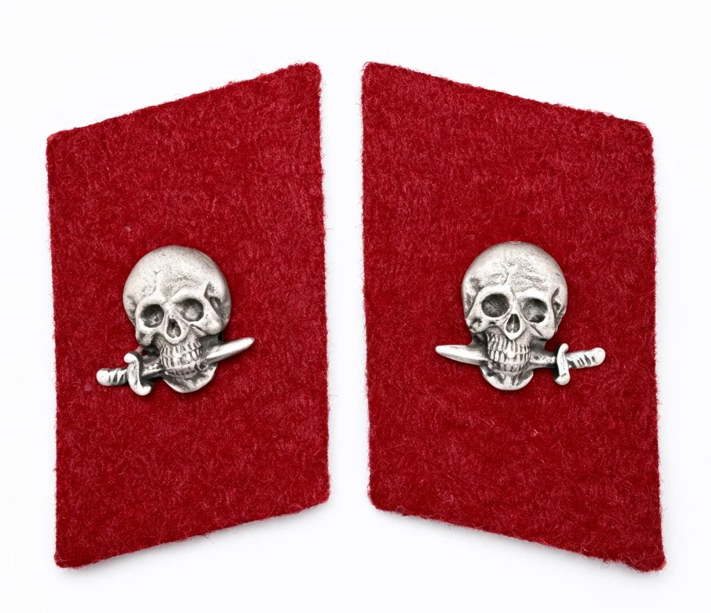 Le mostrine presentano applicato un fregio raffigurante un teschio con pugnale tra i denti, elemento simbolico che richiama la tradizione dei reparti dassalto italiani.