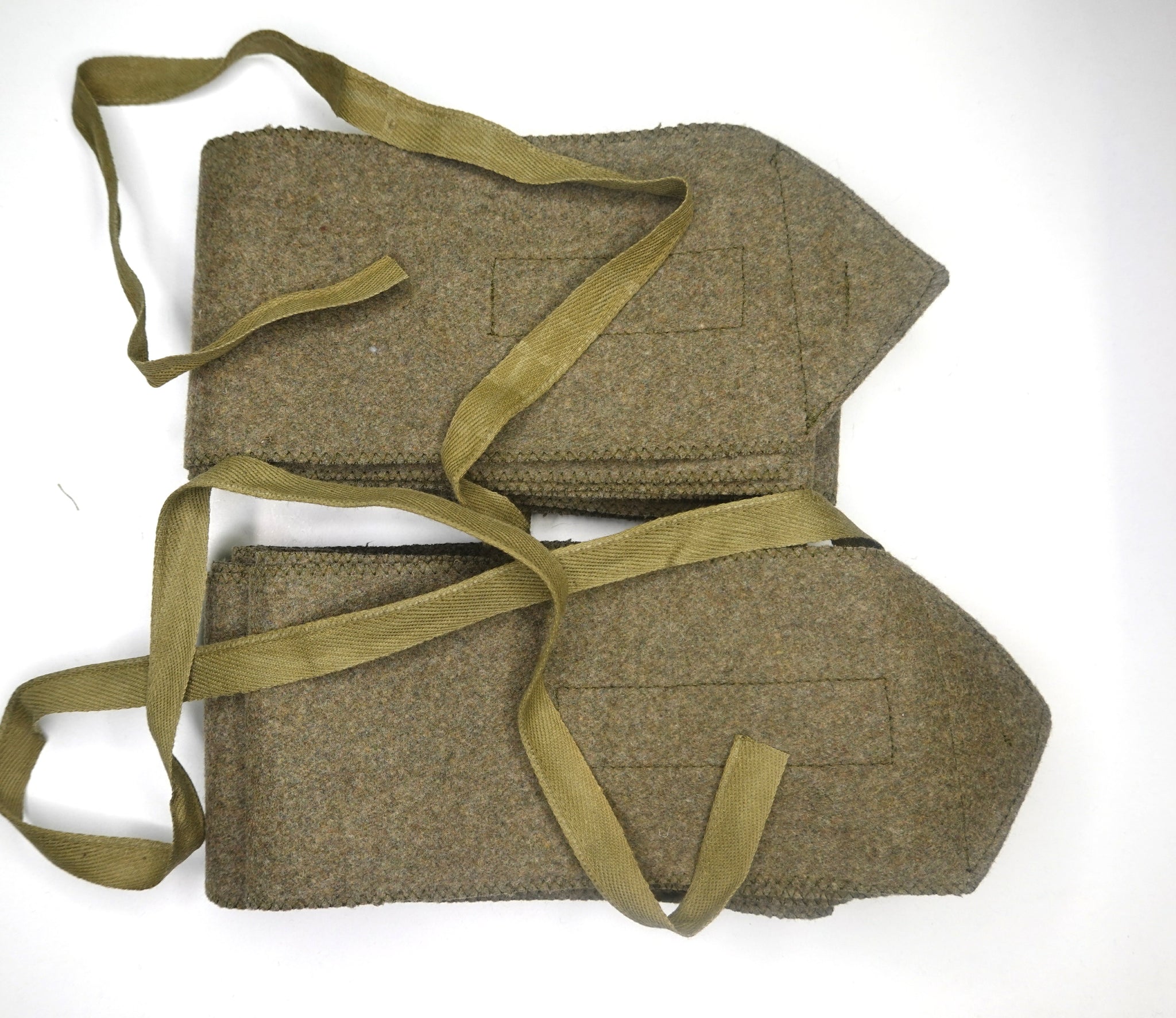 Riproduzione fedele delle fasce mollettiere in panno grigioverde Chiaro, utilizzate dai soldati del Regio Esercito Italiano durante la Prima e la Seconda Guerra Mondiale.
