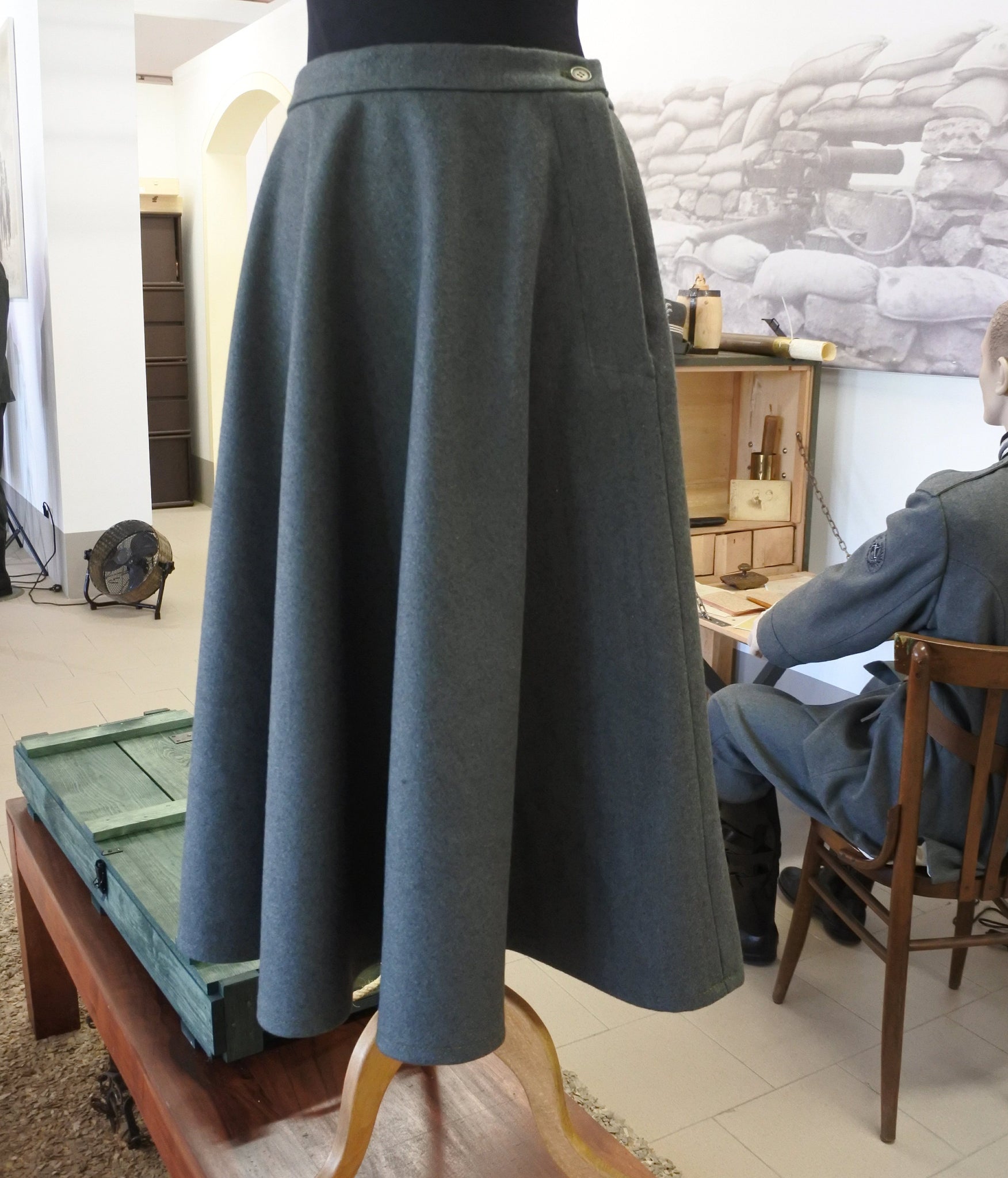 Taglio e linea fedeli alle gonne della CRI in uso tra 1915 e 1918.