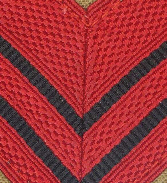 WW2 Riproduzione Coppia di Gradi da Caporal Maggiore o Appuntato del Regio Esercito Italiano (colore rosso, Riga Nera fondo coloniale)