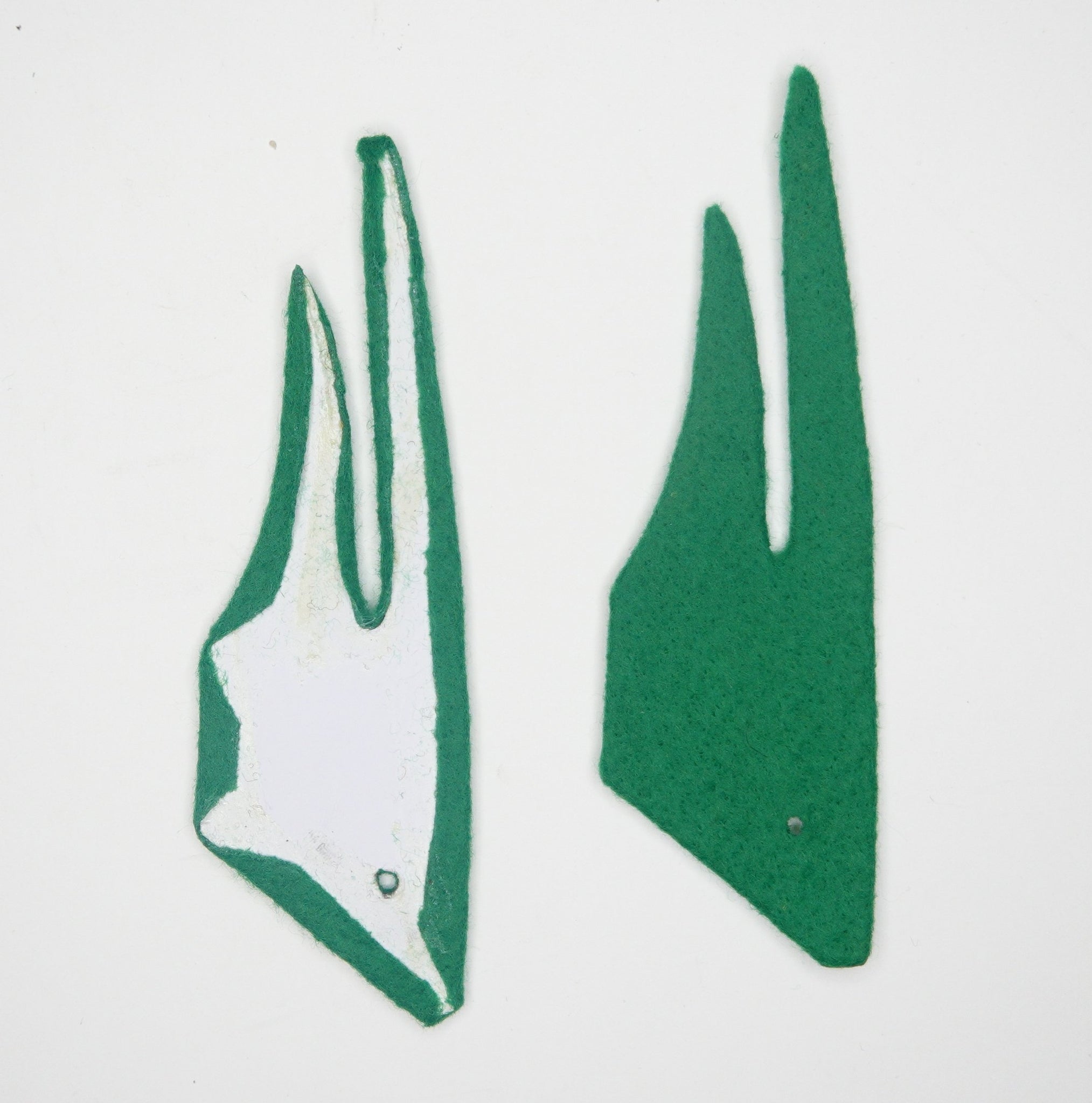 In conseguenza le mostrine presero forma a due punte a forma di fiamme di colore verde.