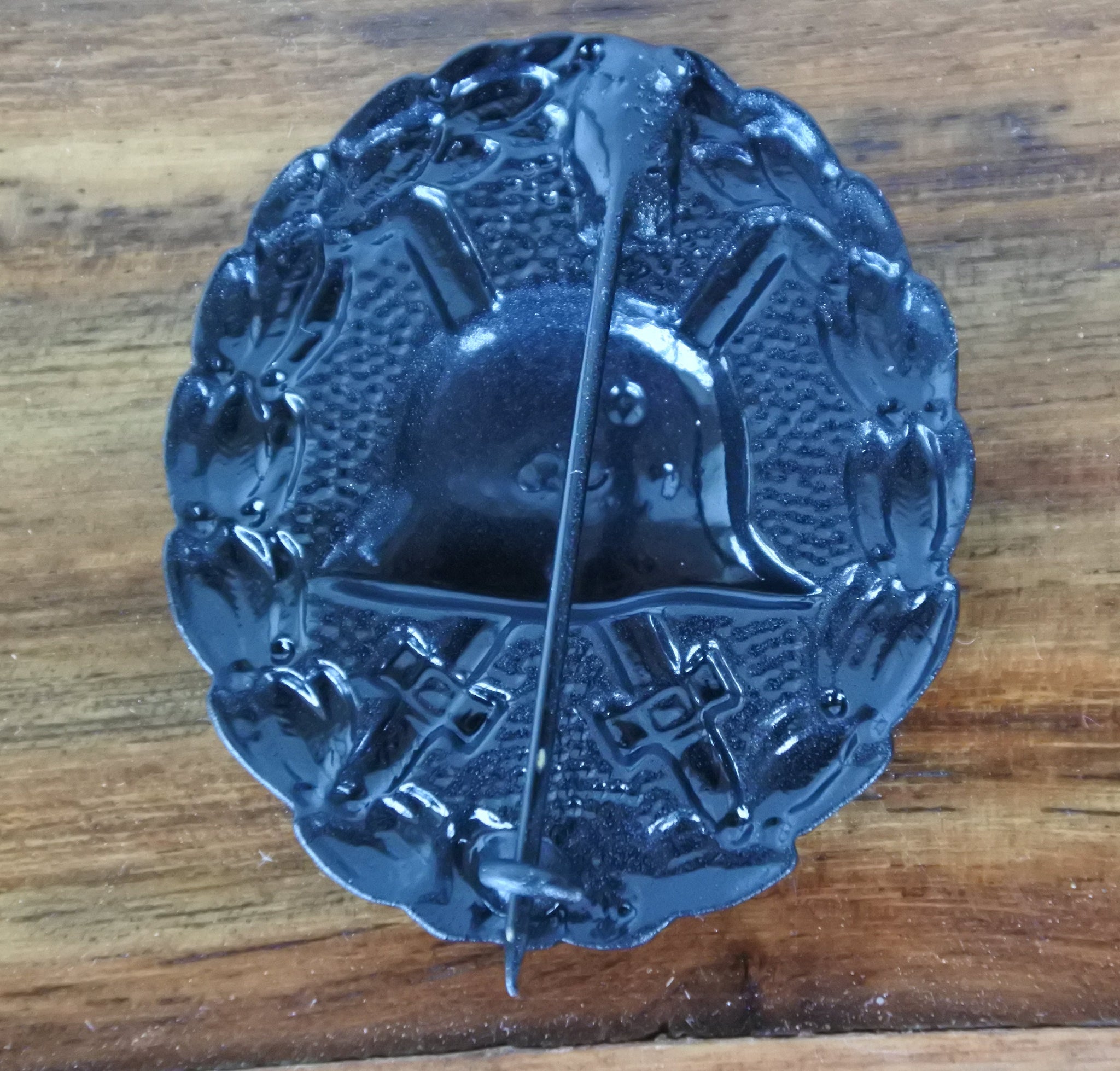 Riproduzione fedele del Verwundetenabzeichen 1918, nella classe Nera, distintivo conferito ai militari feriti durante le operazioni belliche della Prima Guerra Mondiale.