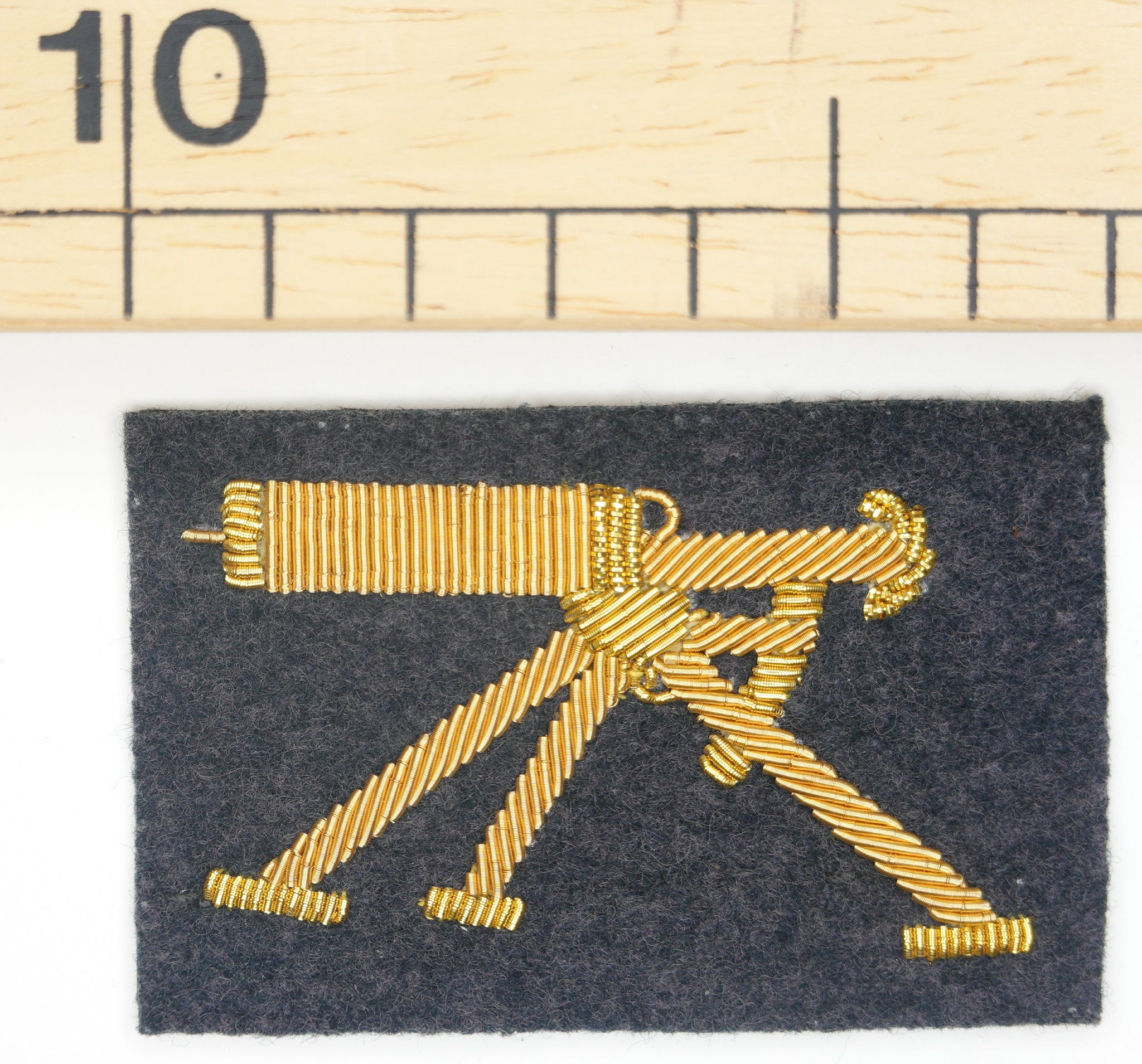 Questo fregio veniva portato sulla manica sinistra della giubba, per identificare il ruolo del soldato nel reparto mitraglieri. La presenza di tali distintivi era fondamentale per il riconoscimento immediato delle specialità sul campo e per linquadramento gerarchico allinterno delle unità combattenti.