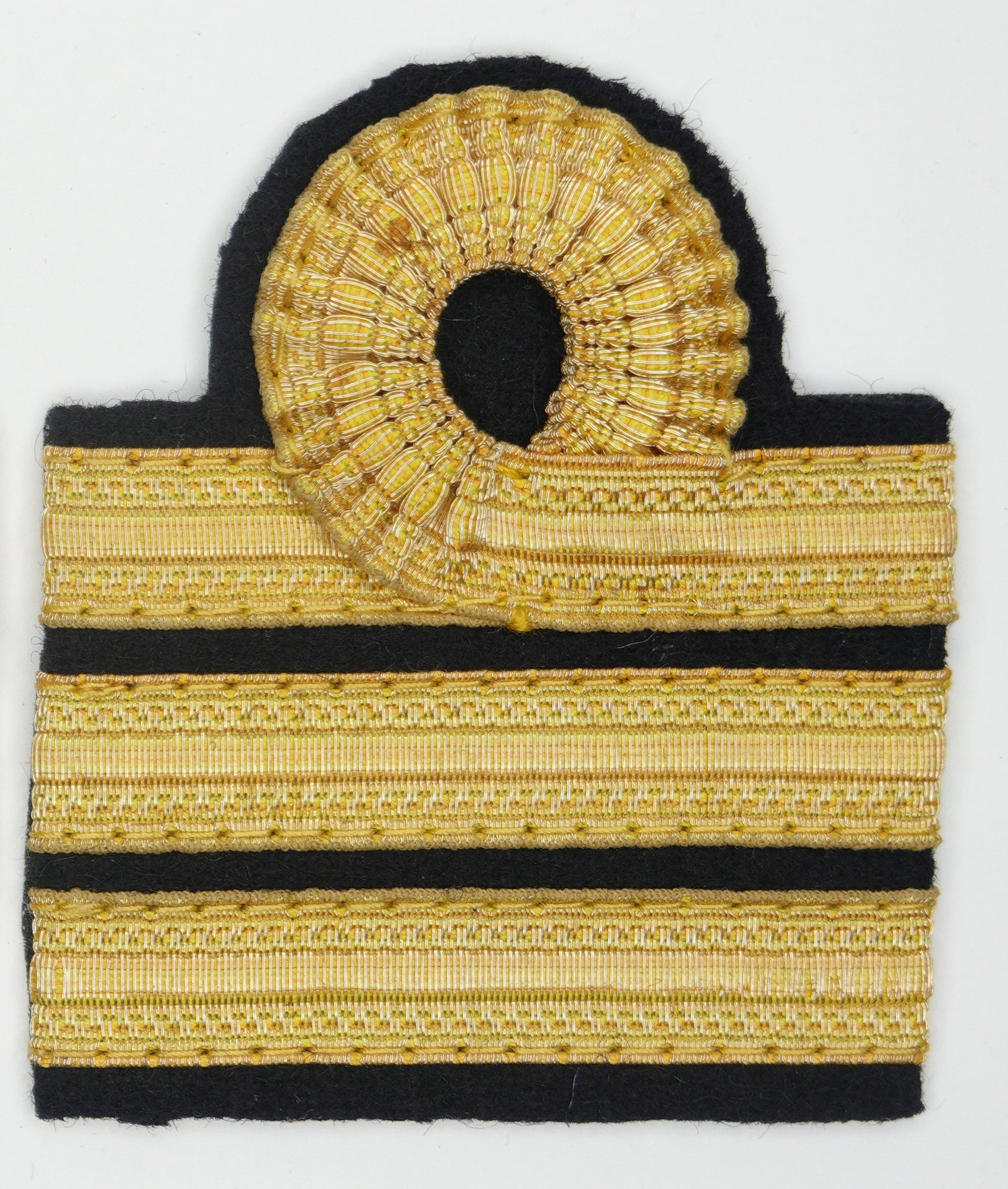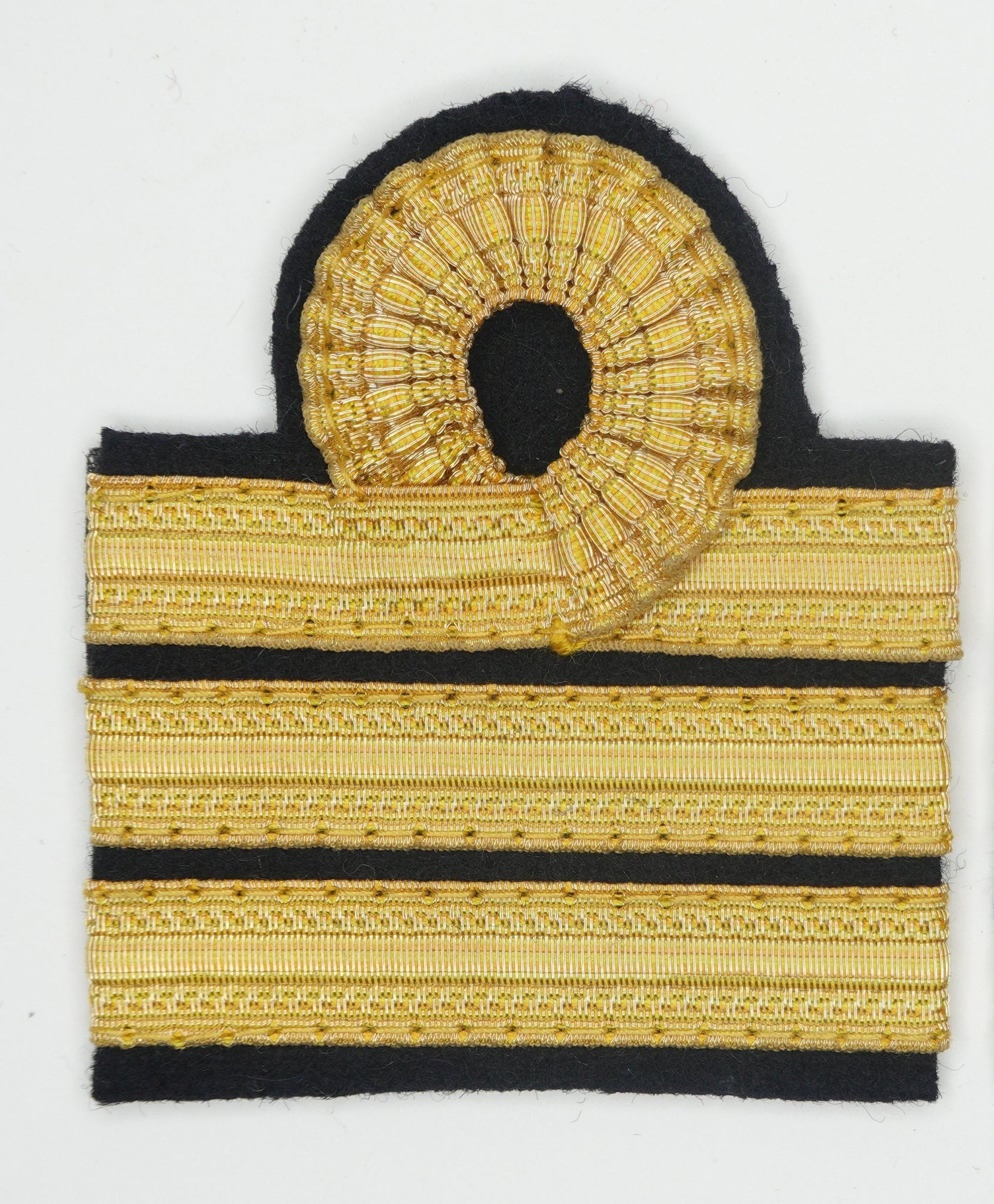 Riproduzione fedele dei gradi da Capitano del Regio Esercito Italiano, modello 1940, Gallone colore Oro su panno di colore nero, come previsto dai regolamenti in vigore fino al 1945.